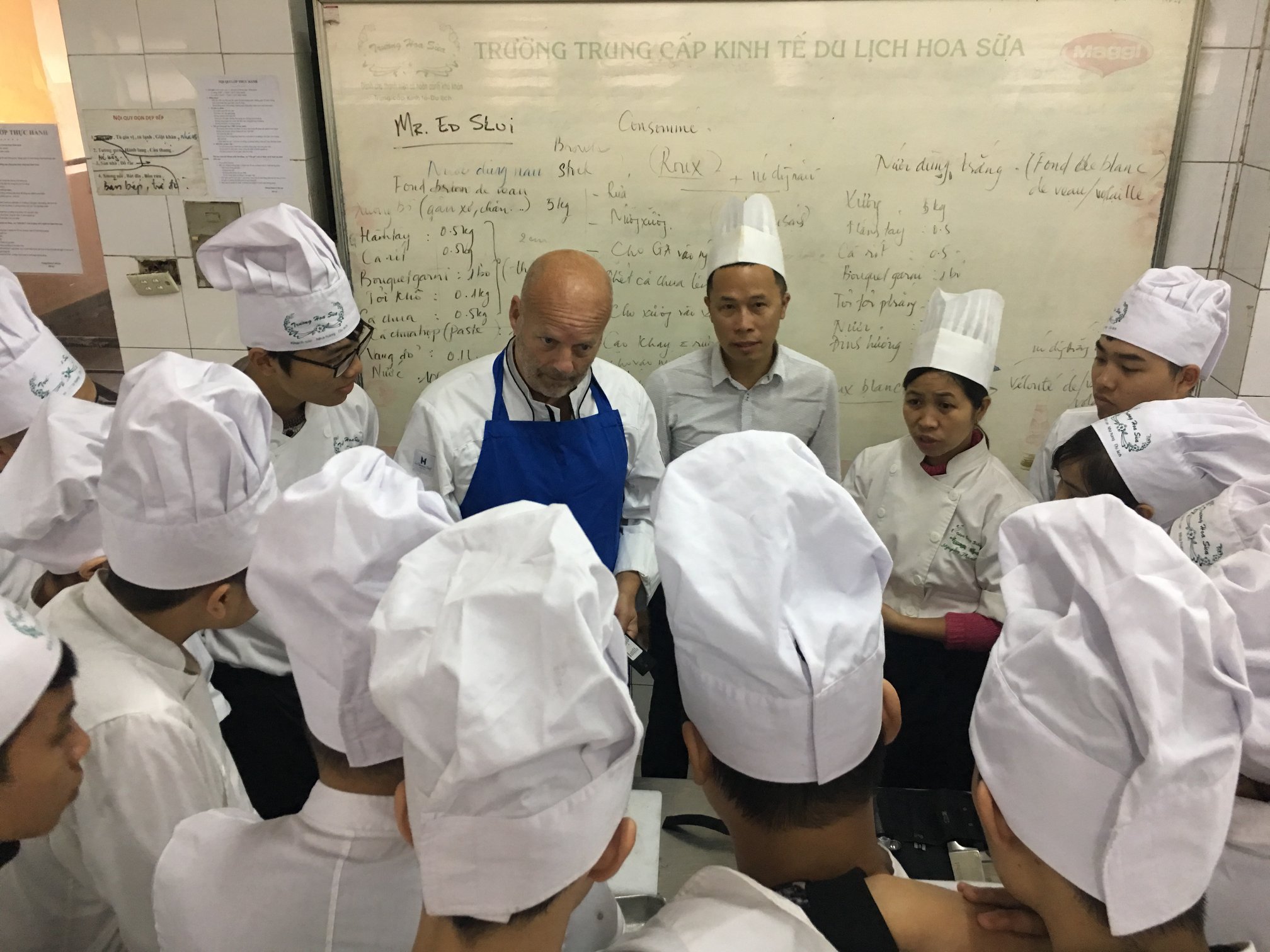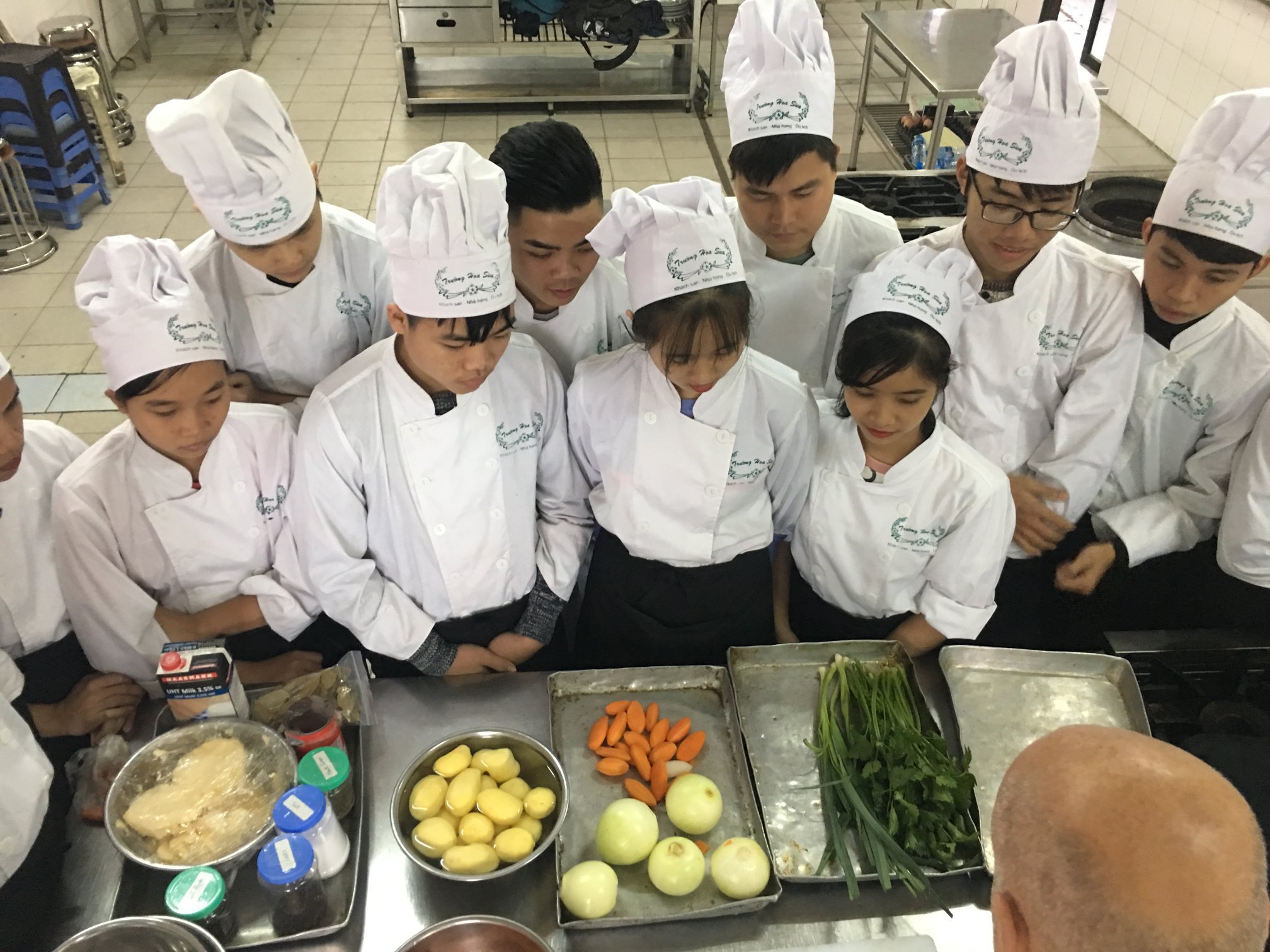 Hoa Sua school is honoured to welcome a new volunteer, Mr. Ed Slui a volunteer from PUM to support the cooking and bakery classes. Mr. Slui taught the students how to cook Hutspot, a Dutch comfort food, and coconut macarons. He also demonstrated knife skills and safety to our first-year students.