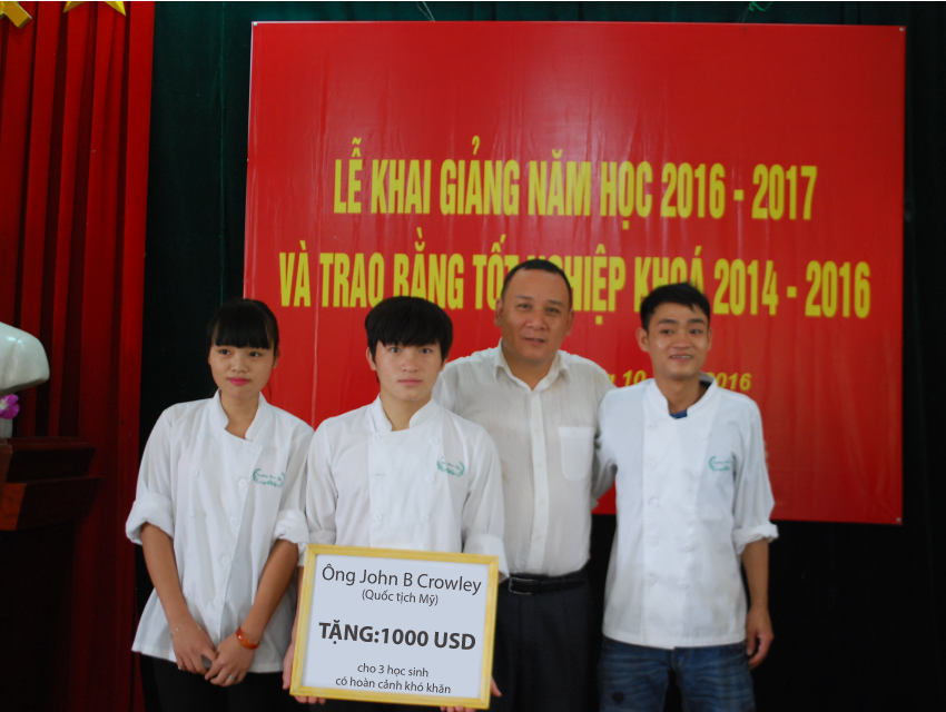 Ông John B Crowley (Quốc tịch Mỹ) trao tặng những suất học bổng với tổng giá trị 1000 USD cho các học sinh có hoàn cảnh đặc biệt khó khăn của trường Hoa Sữa. Học bổng do ông John B Crowley trao tặng sẽ hỗ trợ toàn bộ tiền học phí, nguyên liệu cho 3 học sinh trong thời gian các em học tập tại Hoa Sữa. Chi phí ăn ở, sinh hoạt của các em sẽ do Nhà trường hỗ trợ. 3 học sinh được nhận học bổng là các em: