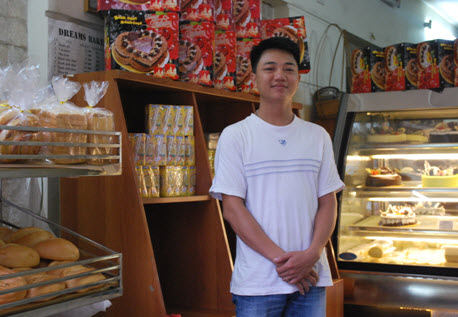 anh Huy. Lịch “làm việc và đi lại” của cháu cứ đúng như vậy đến nỗi mấy “bác xe buýt” không thèm kiểm tra vé tháng mỗi khi cháu lên xe. Phải làm như thế cháu mới dành dụm được ít tiền làm vốn …Thế rồi cháu chung cổ phần với anh Huy mở cửa hàng bánh mỳ ở đường Pháo đài Láng”. Anh em chúng cháu kết hợp với nhau và đã làm nên “cơ đồ”…